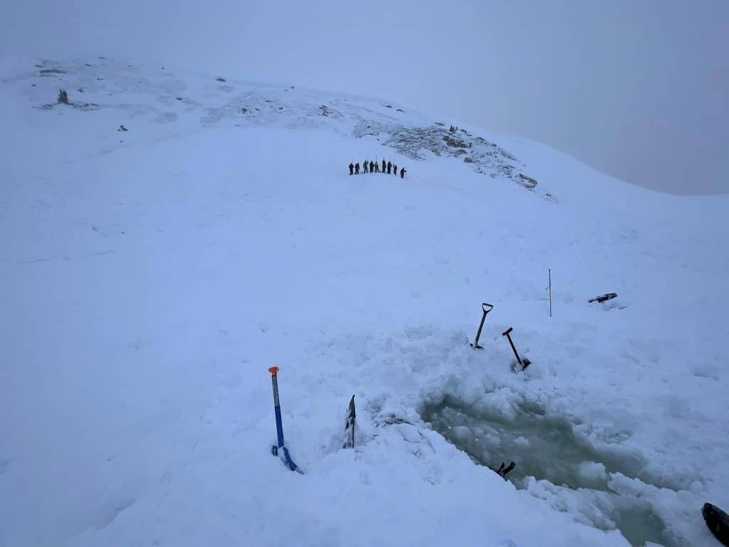The first group on the scene was a motorized avalanche class, according to a Facebook post by Mike Duffy. Duffy’s post stated three riders were in the group that triggered the avalanche, and that debris from the slide made it into Pumphouse Lake. He stated that students from the class had to jump into the water to uncover and remove the man with the transceiver. Duffy wrote that probe lines continued for over an hour and debris was more than 15 feet deep in areas.