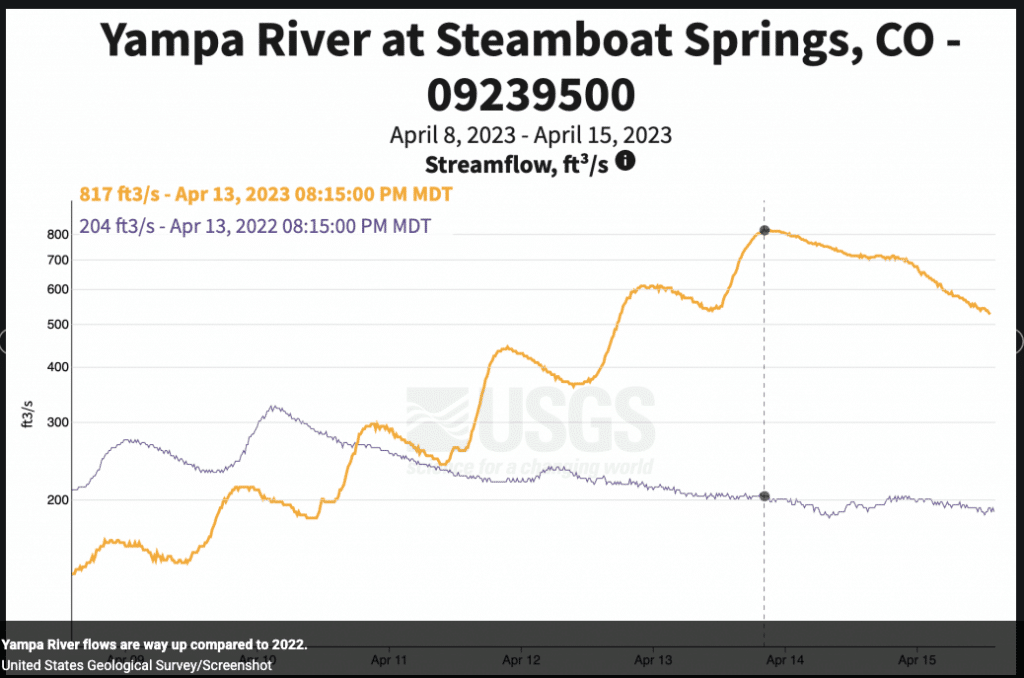 While the melt was slowed by Friday’s snow and cold temperatures, the fluffy stuff is diminishing quickly. The snowpack or snow water equivalent in the Yampa, White, Little Snake Basin seems to have peaked on April 7, according to data from the United States Department of Agriculture.