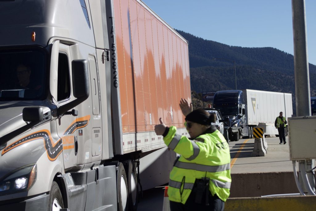 “It’s Colorado. You never know what the weather’s going to be,” said Amy Hosier, Colorado State Patrol’s district supervisor at the Dumont Port of Entry. “They have to be prepared for anything. It’s been in the statute for years now that no matter what the weather is, starting Sept. 1, they’re required to carry chains.”