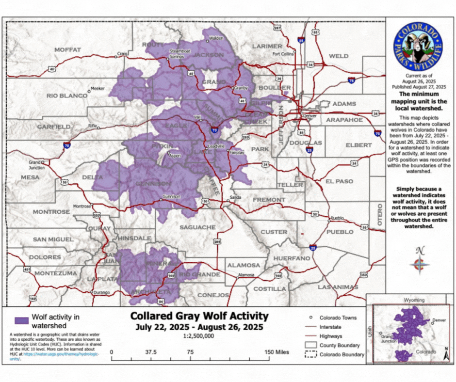 Watersheds in southern parts of the state also saw some wolf activity over the past month, including parts of Saguache, Mineral and Rio Grande counties.