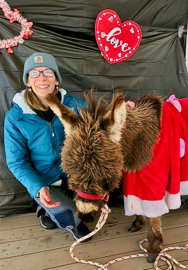 Although Valentine’s Day has ended, those who still want to meet Sir Niblet and the rest of the furry crew can book an event or simply spend a day with them. Donkeys are quirky, social animals with unique personalities. Visit tinyasis.com to schedule an event or learn more.