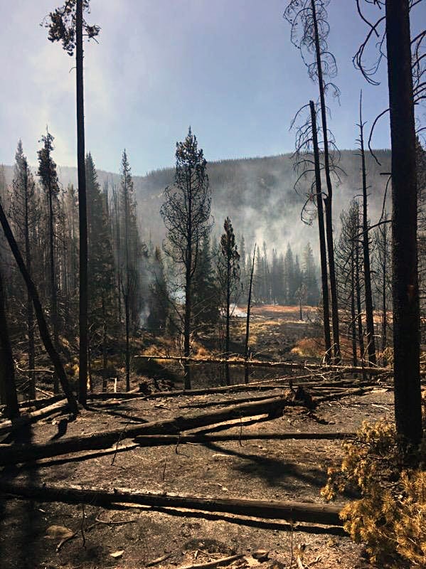 On Sunday, 20 firefighters are fighting the fire in beetle-killed lodgepole pine and fir trees. They are engaging when weather conditions allow them to do so safely.