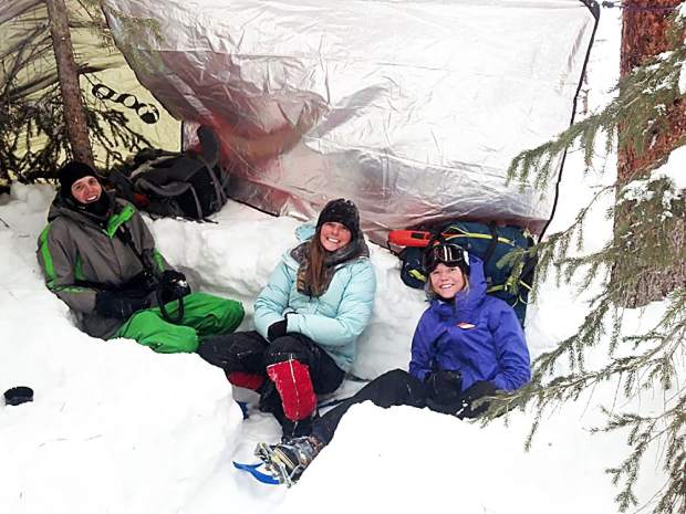 The last type of snow shelter I would like to discuss is a quinzhee. A quinzhee is basically a pile of snow that has been hollowed out and makes sense when there isn’t deep, consolidated snow for a cave. It takes a lot of time and energy to build a quinzhee because you have to pile up snow six to 10 feet high and eight to 10 feet around and then let the snow set up before digging out the interior. Leave a platform to sit or lay on. Quinzhees are also susceptible to collapse and should have vent holes for circulation.