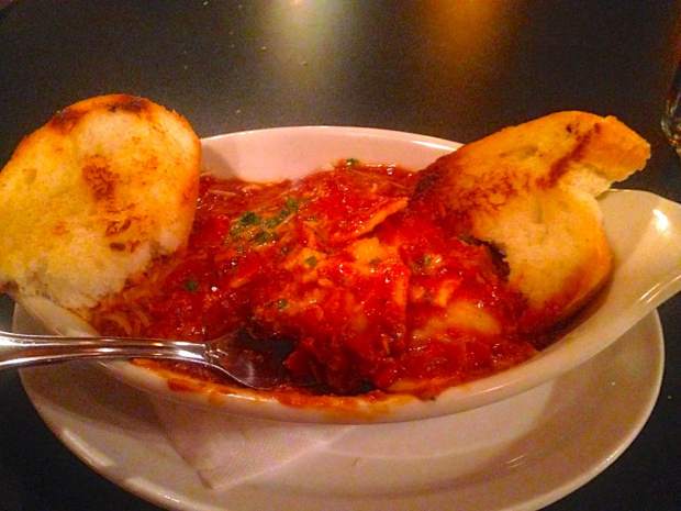 For our night at Mustachios we focused our attention on the seafood fare. The lobster ravioli was delicious, delicate and filling. The ravioli was not overstuffed and was served in a robust spiced red sauce that the ciabatta bread soaked up well. When the dish was first served I must admit I was a little disappointed in the size of the portion but the deep dish they served it in was deceiving; I struggled to finish the entire helping and had no room for dessert afterwards.