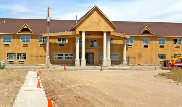 The 20,000-square-foot Allington Inn in Kremmling is nearing completion. Were hoping that by the end of October well have this open, said John Van Gieson, project superintendent for Van Gieson & Co. Inc. of Alamosa. The foundation of the two-story building was done last year.This year we started out putting the floor in and then doing all the frame work, he said.Workers also had to place about 20,000 cubic-yards of fill to get the building level, he noted. Next week he hopes the company will have the exterior walls completed. The numbers of workers at the site vary a lot, Van Gieson said. We have anywhere from three to 20, depending on where were at and what were doing, he said. Workers still have to paint and furnish the building and pave the streets.Were quite a ways out yet, Van Gieson said, but with any luck it will go fairly quick.The Inn has 46 rooms, including two Jacuzzi suites, two family rooms, two handicapped rooms, a pool, hot tub and weight room. A double-sided fireplace is stationed at the building entrance. The community also will be able to use its conference room.A retail area is also located on the main floor for any business that wants to rent the space. The rooms dimensions are 13 by 17 feet. The main floor also has a guest bathroom and laundry room.Inn guests will be offered a continental breakfast as well. Kacey Beres, Kremmling Chamber of Commerce events director, said the new inn will be beneficial to the town and its visitors. There is a huge need for more lodging, she said. Were very excited about having another hotel in Kremmling. The building is located at 215 West Central Ave., across from Kremmling Mercantile.Kremmling Mayor Thomas Clark said this location is perfect.I think the guests are really going to love it because they have a wonderful view, he said. A modern facility like that in Kremmling is really going to help us out.Van Gieson said hes noticed more traffic along the street since they started construction. Weve got to meet a lot of people up here again for the second time, he said, adding that they also built the towns Cliffside Inn. Were real pleased with the way its going. For the size of the building and the weather that weve had to deal with its actually come along pretty good. Katie Looby can be reached at 887-3334 ext. 19601 or e-mail klooby@grandcountynews.com.