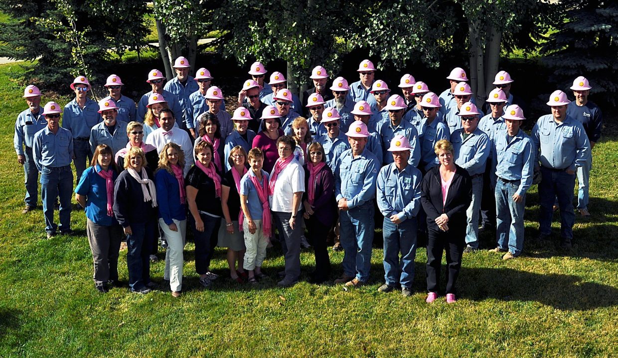Mountain Parks Electric employees are thinking pink these days as they raise funds to battle cancer. The “Wear Your Heart On Your Head” campaign began with a challenge from 3M Electrical Markets Division. October is Breast Cancer Awareness Month, an annual campaign to increase awareness of the disease. 3M, which is donating $15,000 to the American Cancer Society, challenged electrical co-ops to wear pink hard hats for the month of October to increase the awareness throughout the community. So the challenge is on, department-to-department, in MPE with $1 per work day pledges during the month of October for each employee who wears his/her pink hardhat or scarf each day, among other creative fundraising efforts at the co-op.