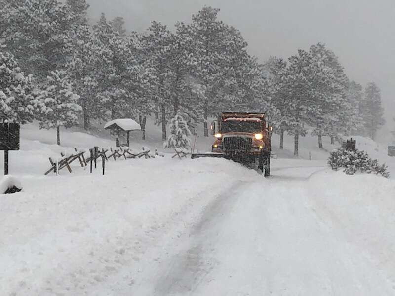 The Beaver Meadows entrance and the Fall River entrance had closed ahead of the storm on Saturday. The Beaver Meadows Visitor Center, the Fall River Visitor Center and the Moraine Park campground remain closed.