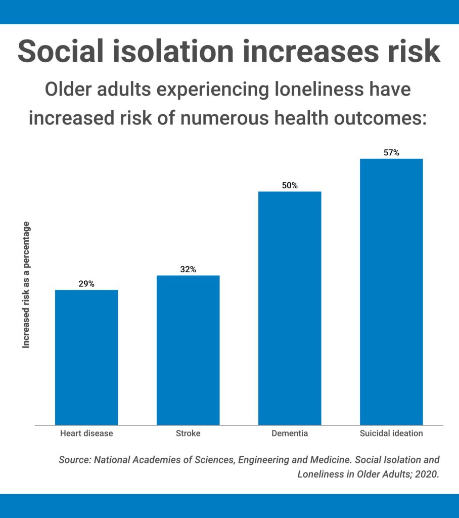 Social isolation, Catlow said, can lead to negative mental health outcomes, like depression and anxiety, and impact physical health, as well.