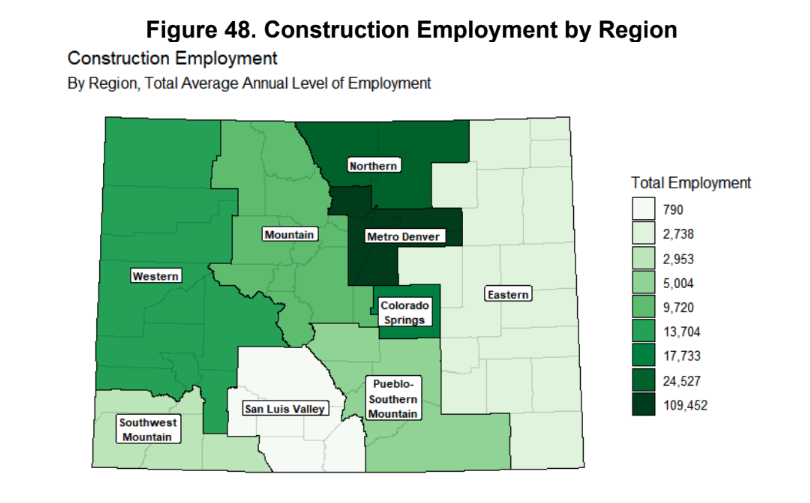 On Colorado’s Western Slope, the $2 billion from construction is responsible for 9% of the region’s gross domestic product. Construction jobs make up 10% of the jobs in the region, according to the Bureau of Labor Statistics.