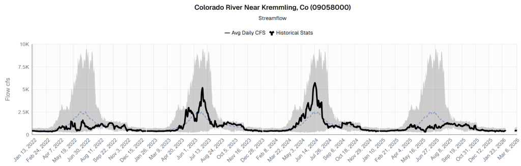 Masterson added that the dashboard provides “snapshot storytelling” for the everyday community member to understand a very complex topic. The tools provides decades of data — stretching from the Colorado River to the reservoirs that sustain Grand County and beyond.
