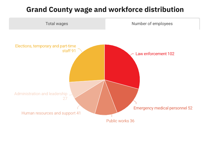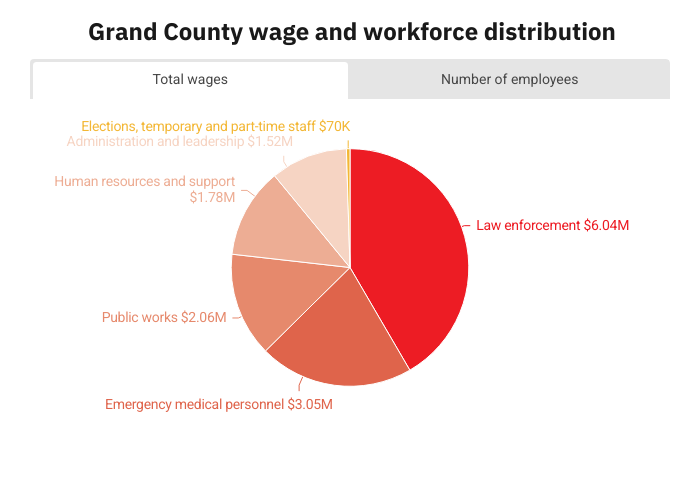 In total, Grand County employed 349 workers in 2025. The county budget for wages came out to about $14,520,000.