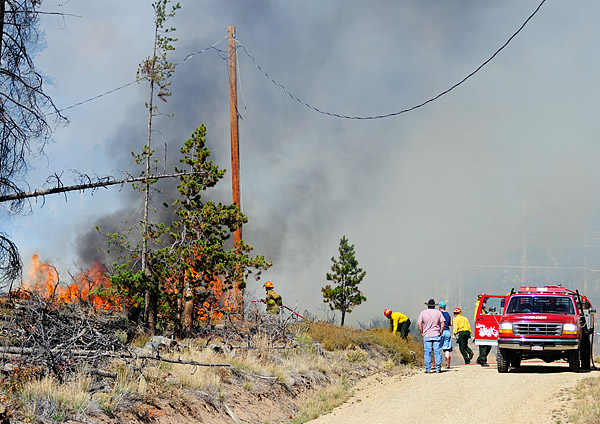 Firefighters responded to a small wildland fire on County Road 872 on Wednesday afternoon at the top of Red Dirt Hill. Granby, East Grand, Grand Lake and Hot Sulphur Springs fire departments responded with equipment and personnel to bring the blaze under control.