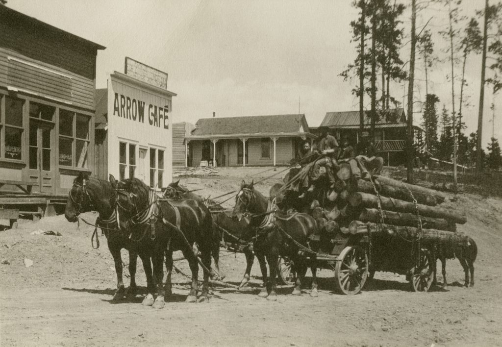 By September 28, the rails reached Arrow. Freight trains began to run, bringing in revenue. Partially helped with a rough road, the railroad built from Arrow to the Fraser Valley below. 185 railcars of cattle and six of lumber were shipped out of the Arrow station. Stage coaches from Grand Lake met the train to bring passengers to enjoy the beautiful lake town.