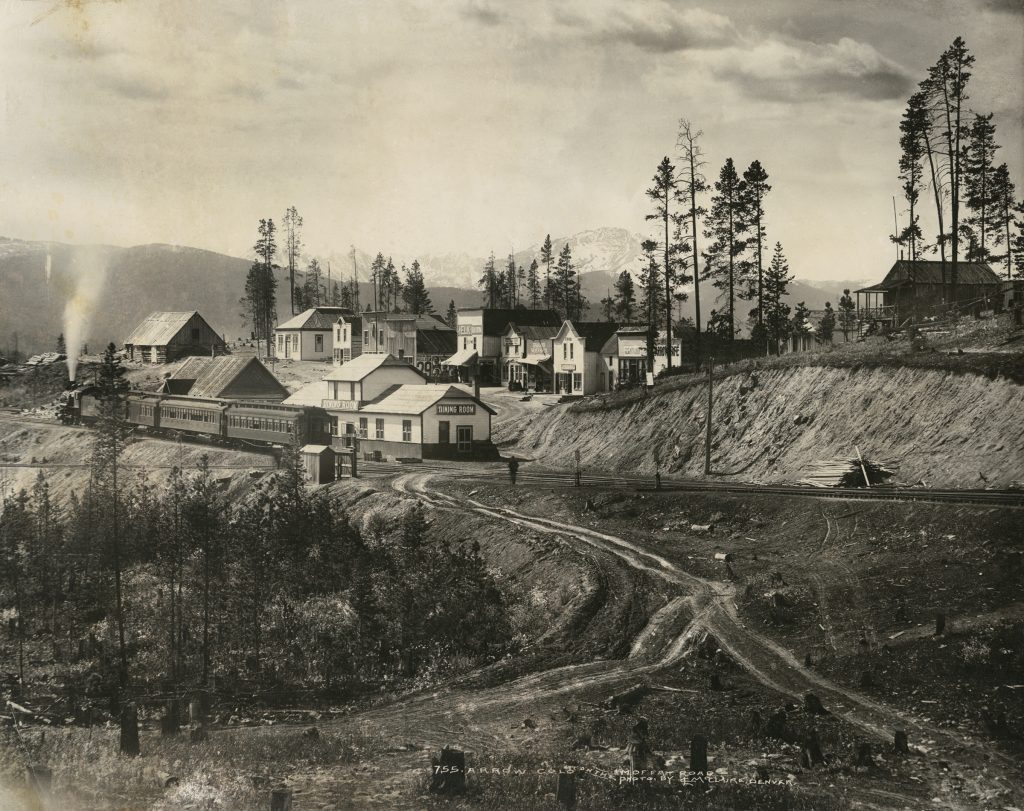 In 1904, Arrow station passengers visited a new Moffat Road boomtown just west of the Continental Divide below the Rollins-Corona Pass with a large central business district with eleven saloons, several hotels, restaurants, a general store, four saw mills, a school, and a post office. The brand new train station was attached to a new dining room, if passengers did not want to wander too far.